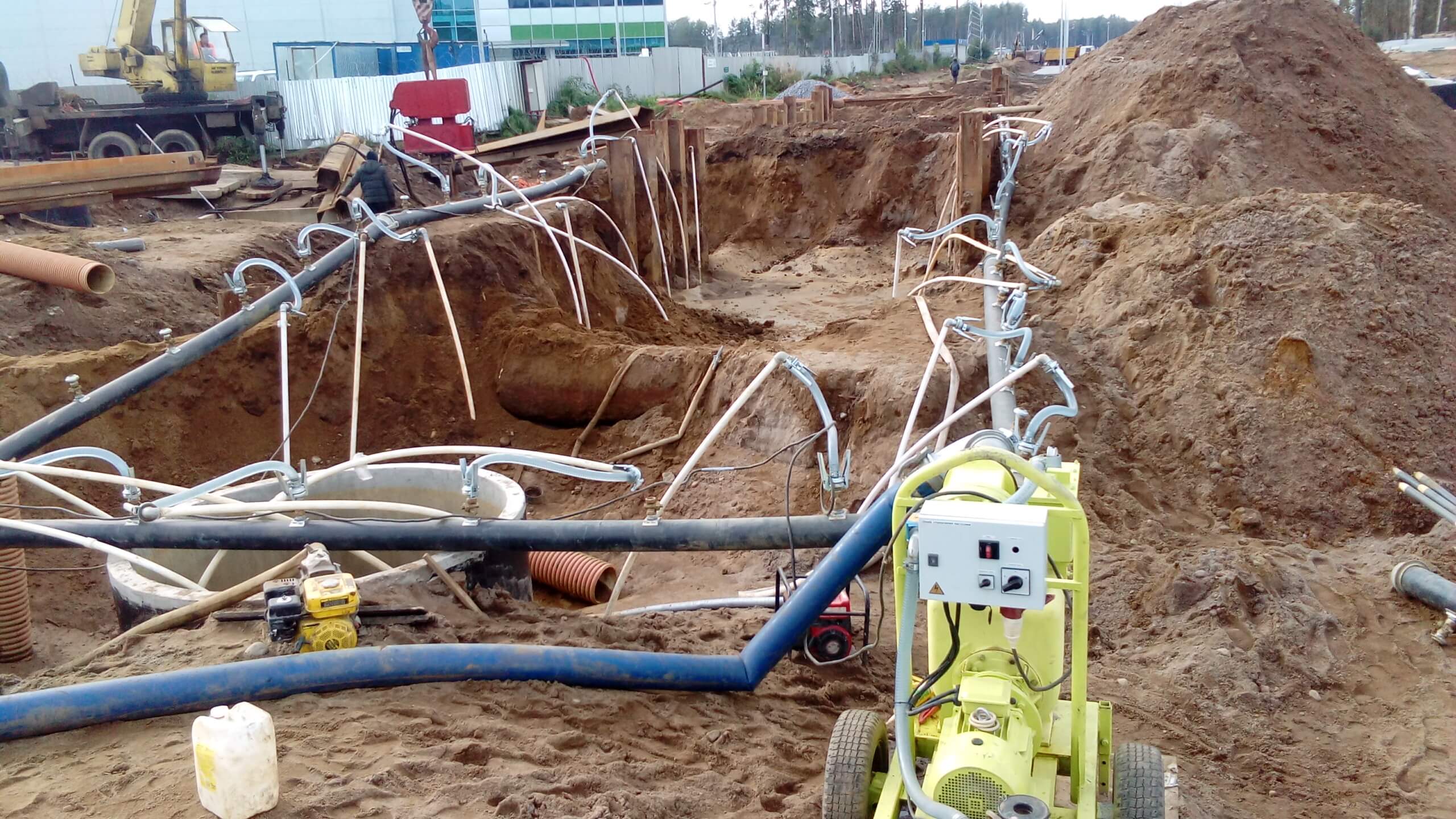 Одним из распространенных методов как в скальных, так и нескальных грунтах, является водопонижение при помощи скважин. При таком методе используются одна, две или целый комплекс скважин для водопонижения.